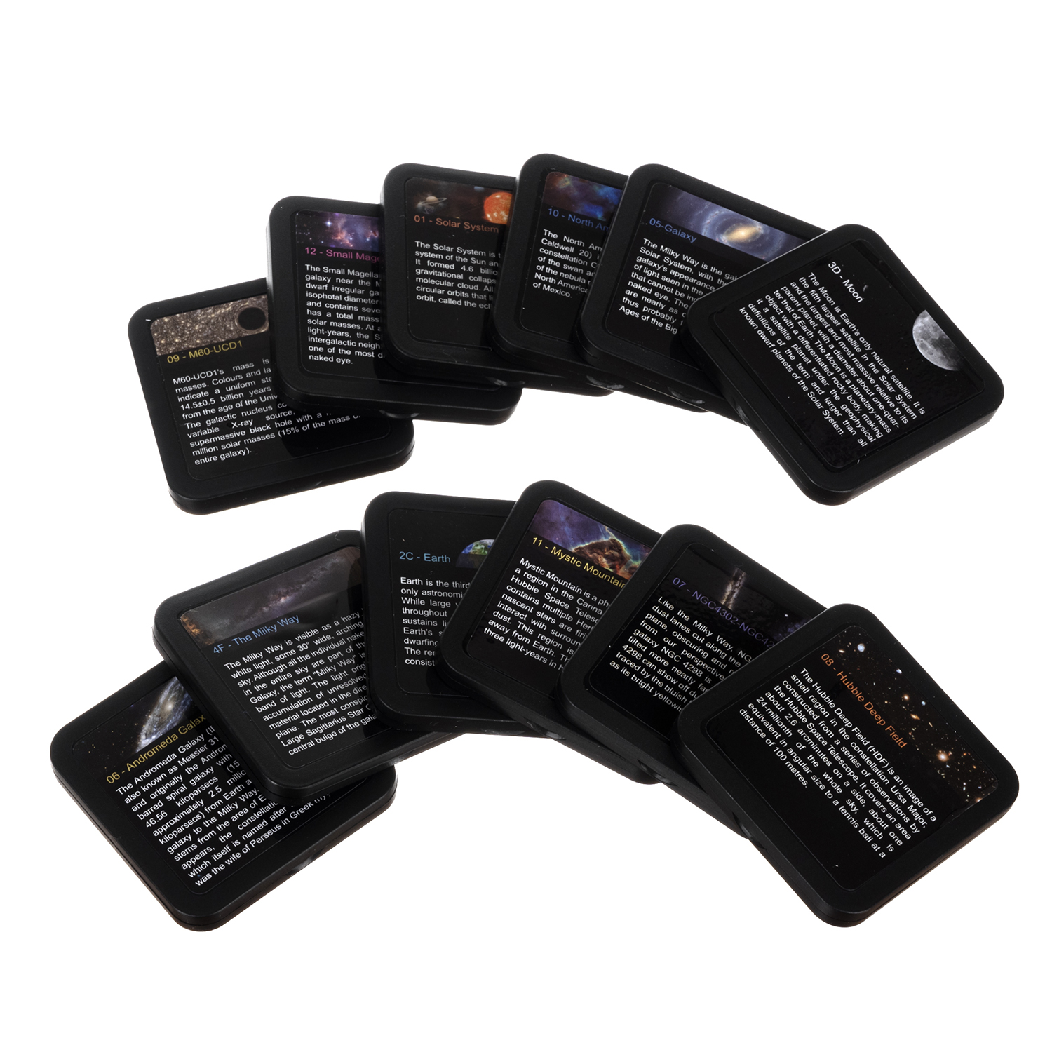 - 12 slajdów (3D Moon, North America Nebula, Small Magellanic Cloud, Galaxy, MN60-UCD1, Solar System, Mystic Mountain, NGC4302-NGC4298, Hubble Deep Field, Earth, The Milky Way, Andromeda Galaxy)