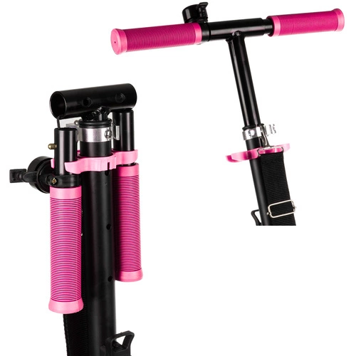 Hulajnoga miejska składana dla dzieci z dużymi kołami 200mm, lekka i z hamulcem, czarno-różowa – idealna do miejskich przejażdżek!