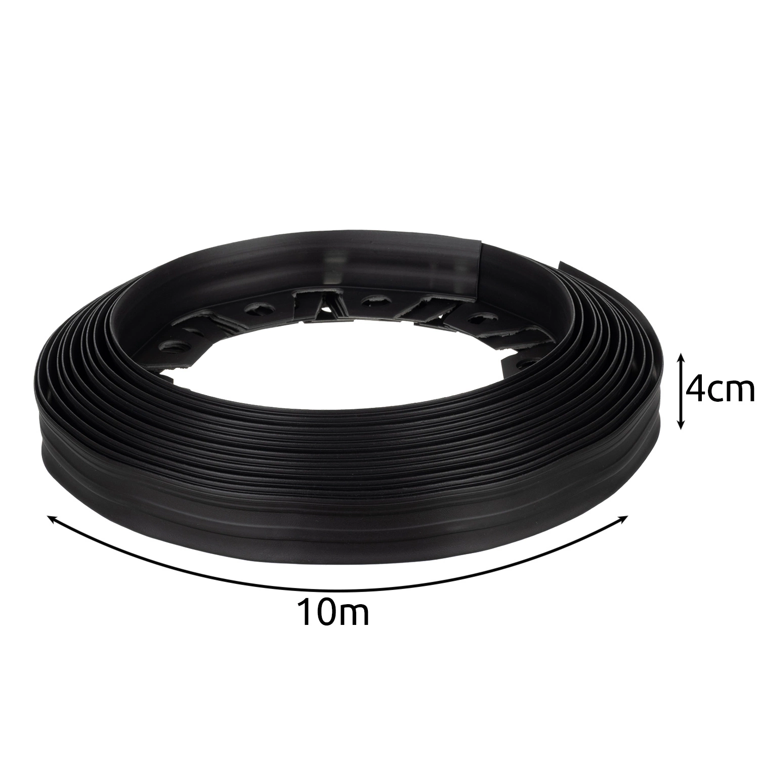 Obrzeże ogrodowe 4cm x 10m czarne z 20 kołkami – elastyczne obrzeża trawnikowe do ogrodu!