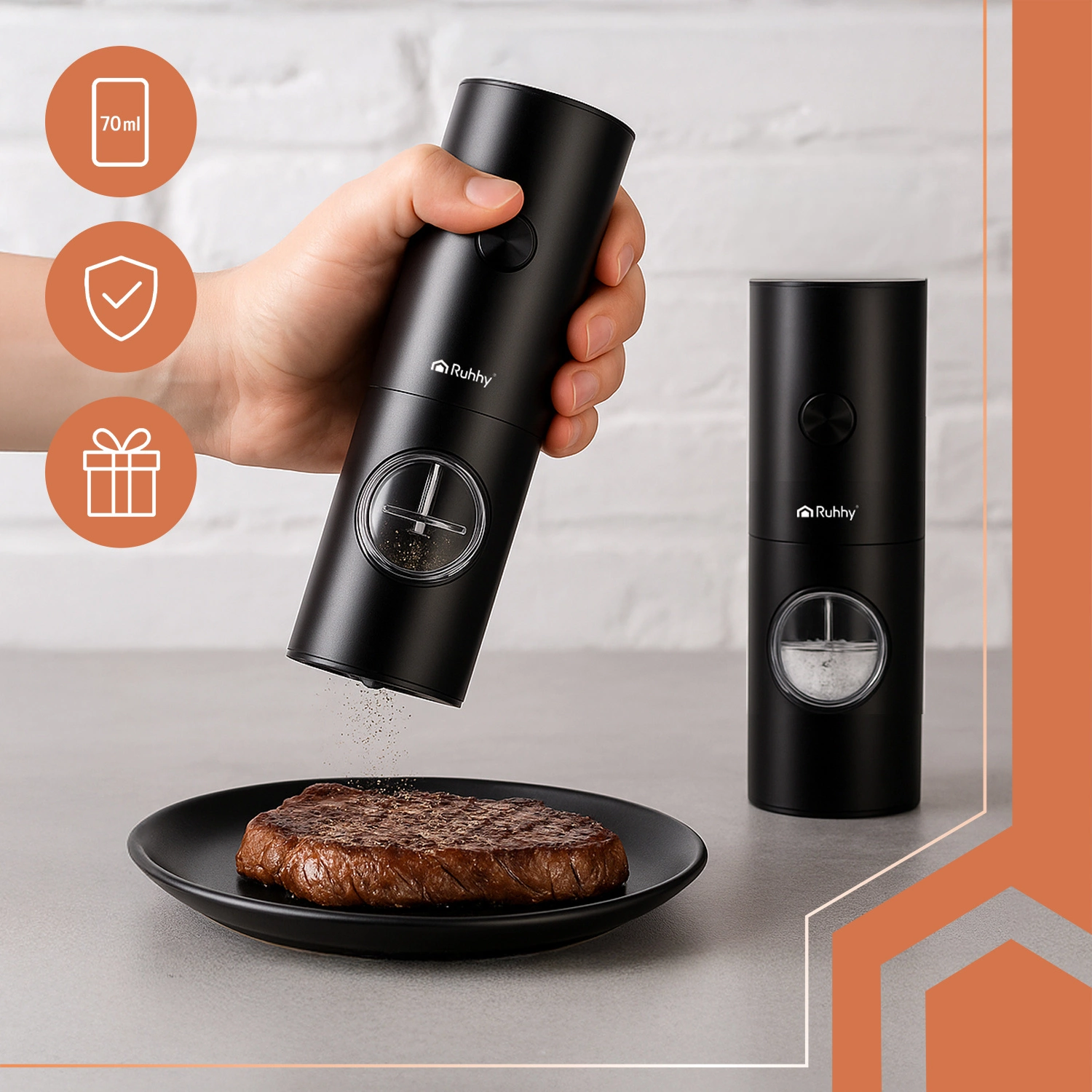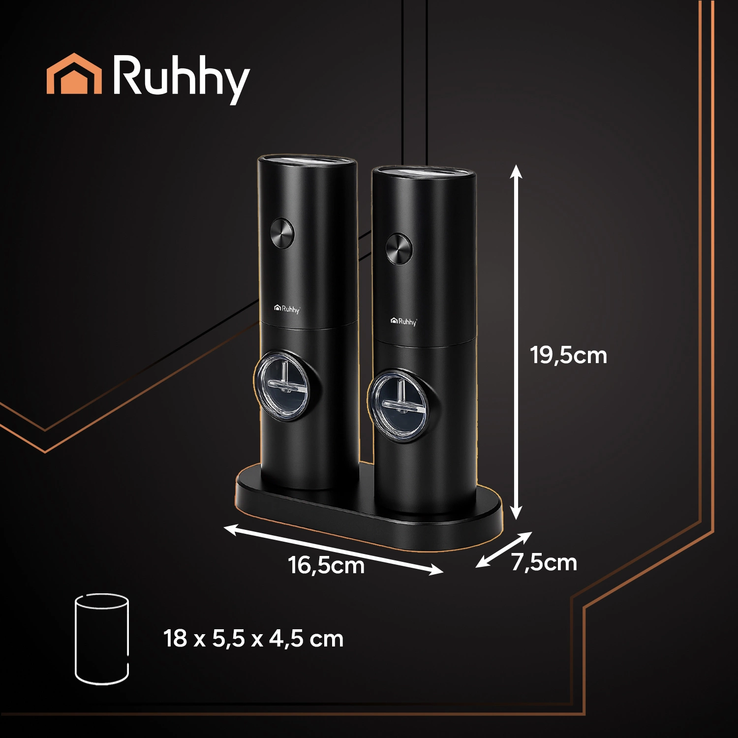 Elektryczny młynek do pieprzu i soli RUHHY zestaw 2 szt – styl, precyzja i smak na Twoim stole!