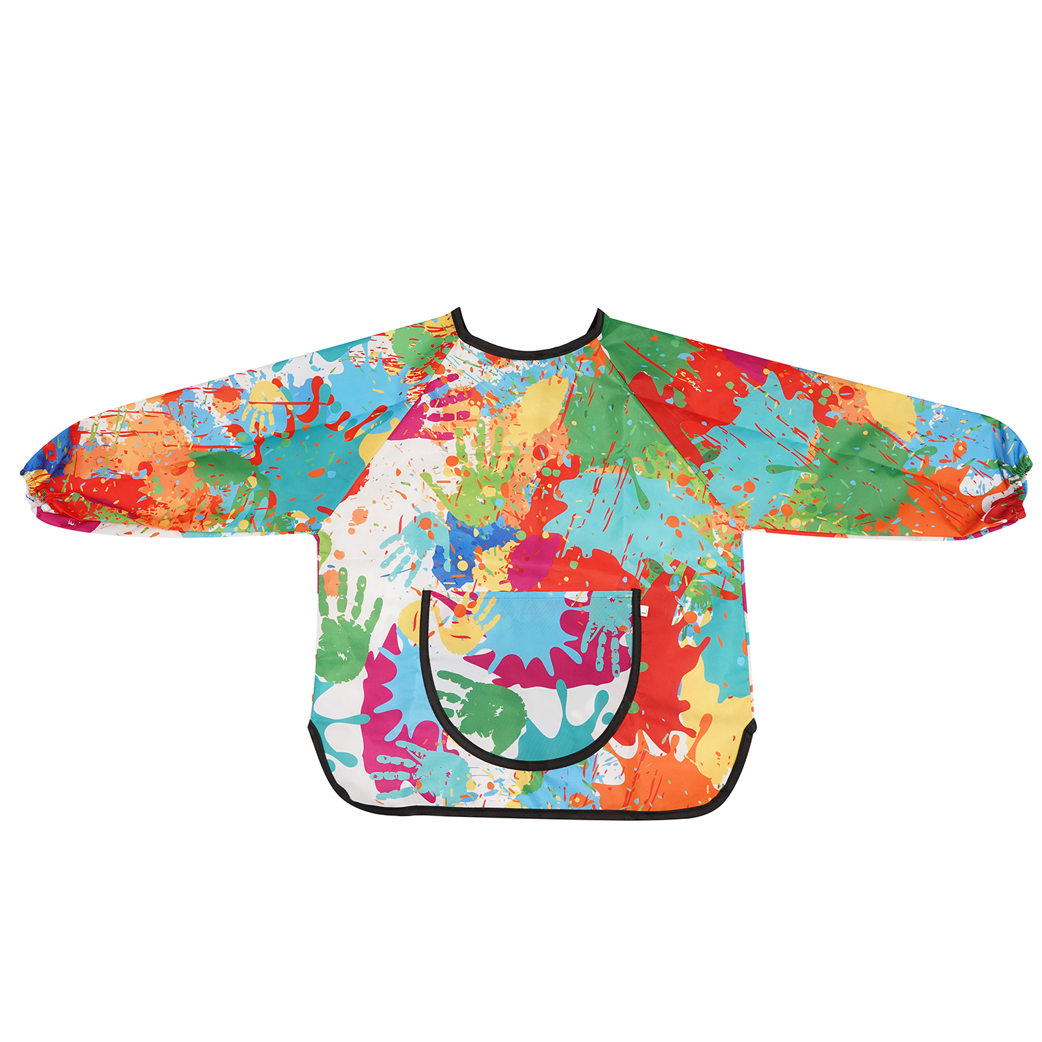 Długie rękawy z gumkami idealnie dopasowują się do rączek dziecka, chroniąc przed farbą aż po nadgarstki. Zapobiegają zsuwaniu się i sprawiają, że dziecko swobodnie się porusza.