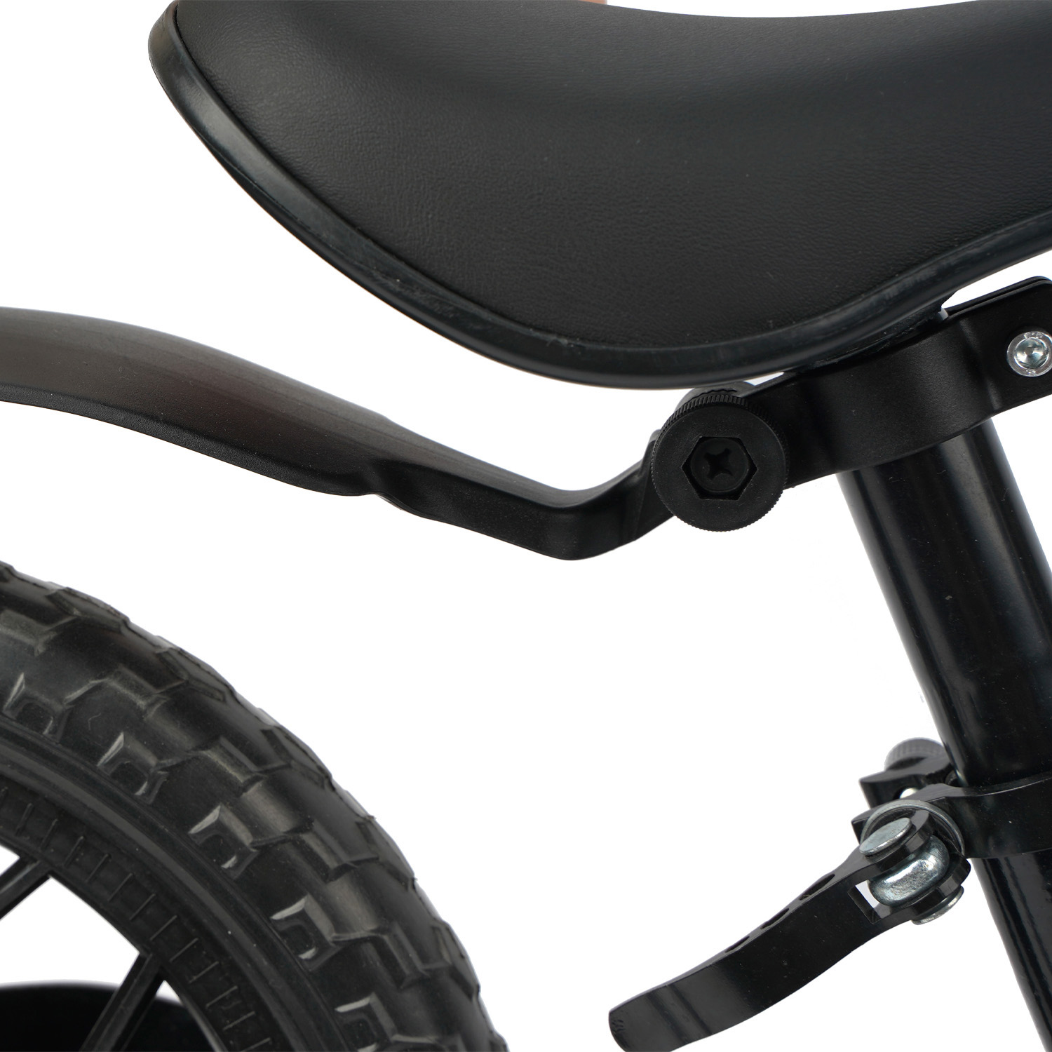 Czarny rowerek biegowy posiada praktyczny błotnik w zestawie – czystość i wygoda w każdych warunkach