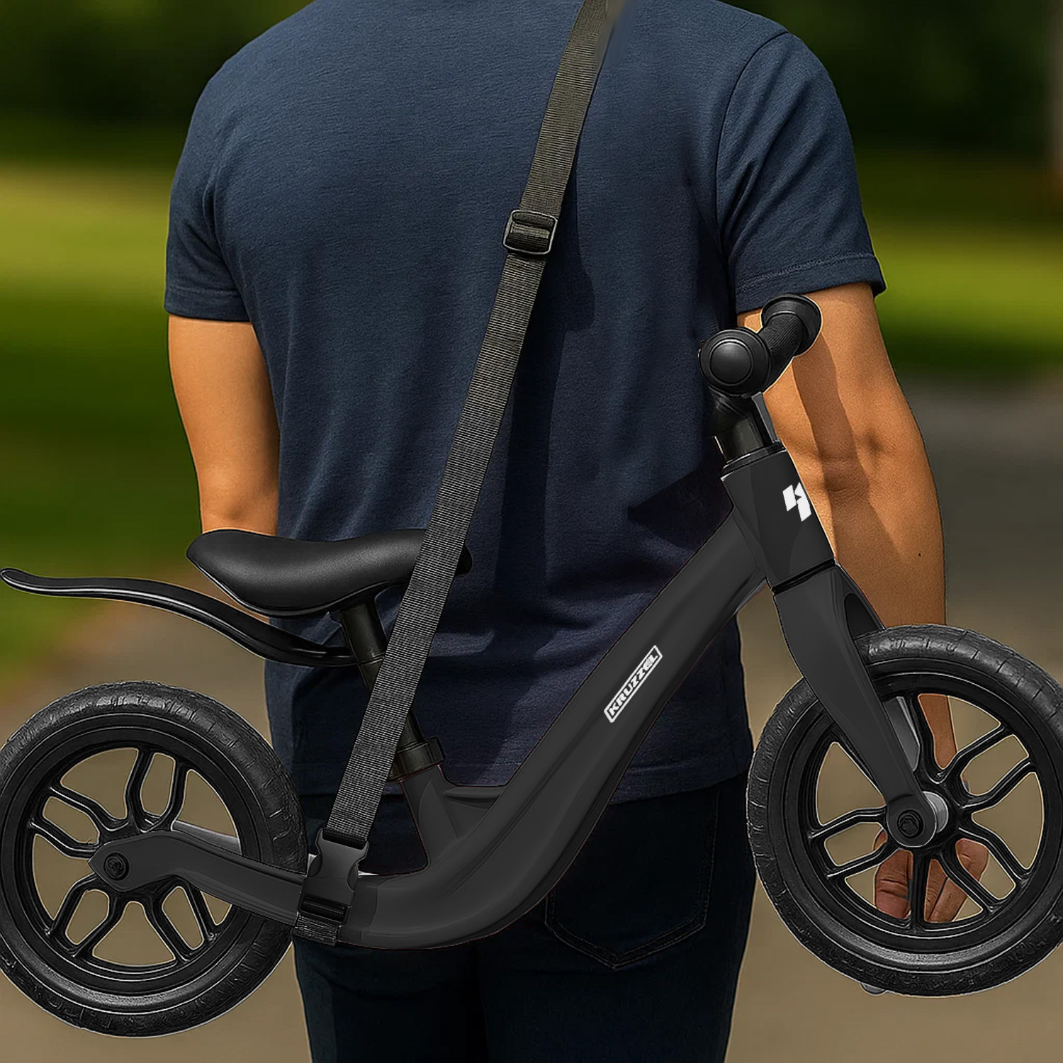 Rowerek biegowy dla dzieci 2+ KRUZZEL rower dziecięcy lekki koła 12" + pasek na ramię czarny!