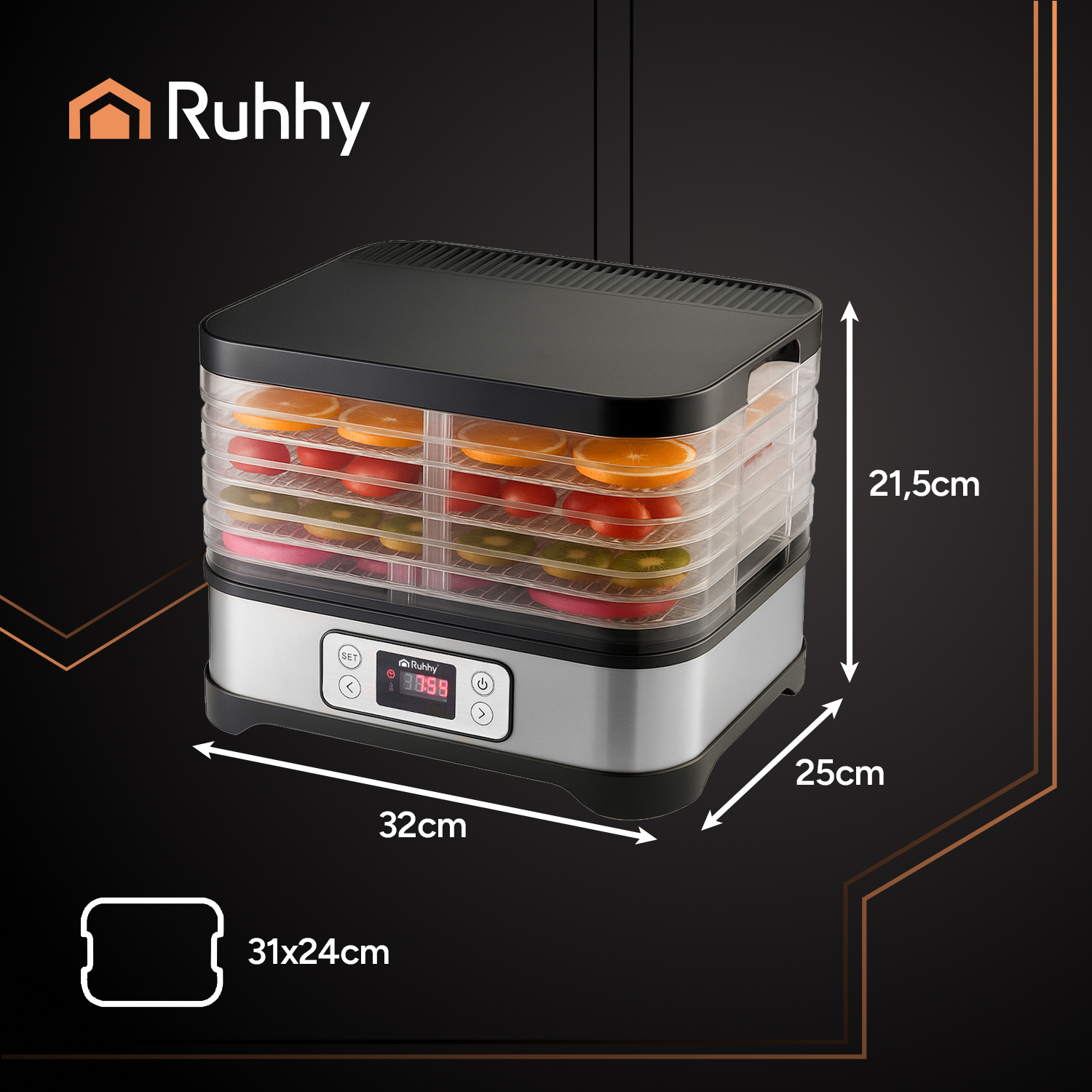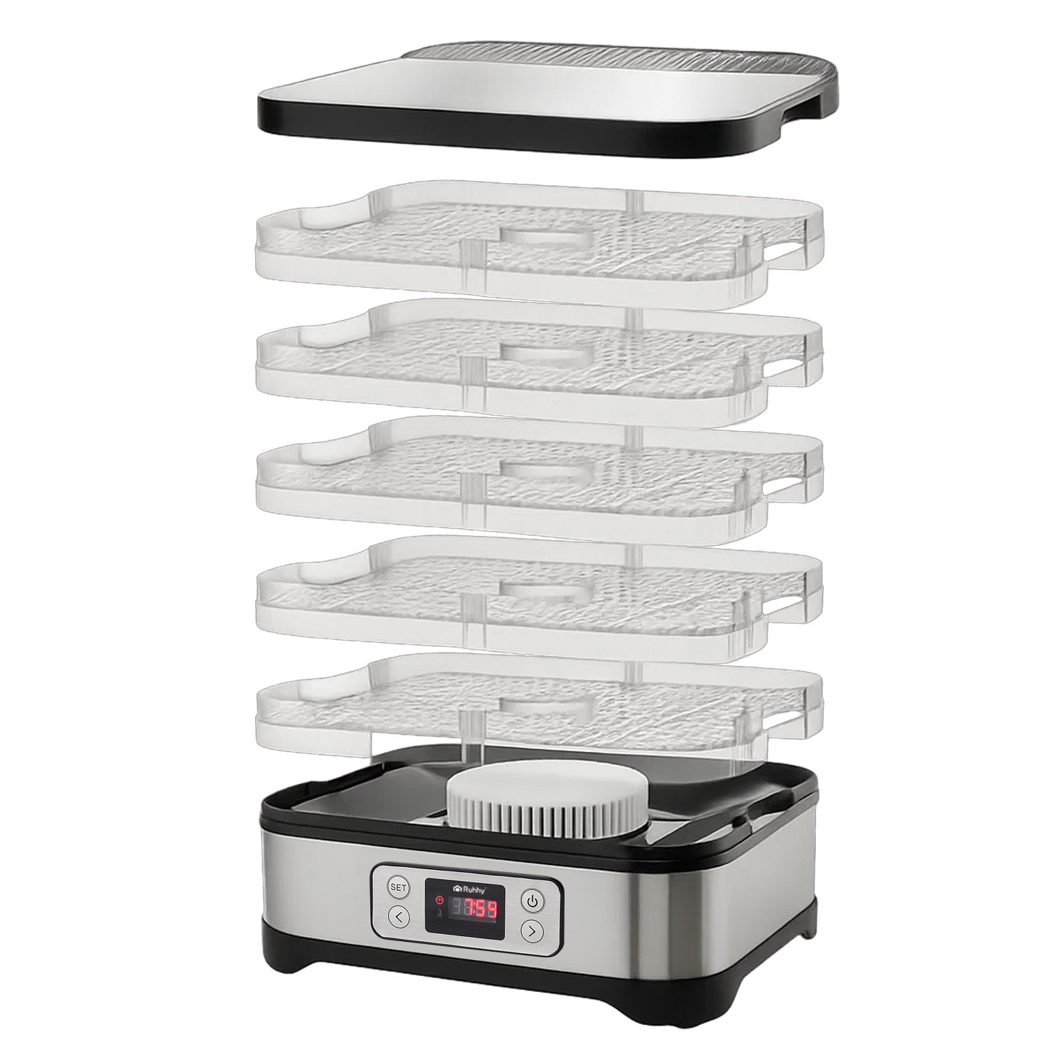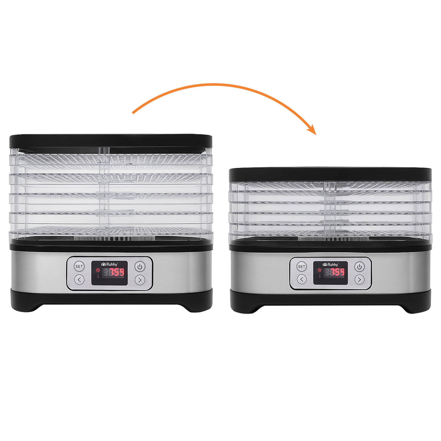 Suszarka do żywności RUHHY posiada tacki o regulowanej wysokości – elastyczność dopasowana do Twoich potrzeb