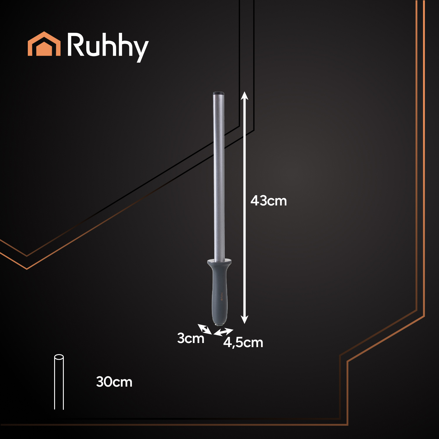 ✴️ Ostrzałka RUHHY to narzędzie stworzone z myślą o precyzji – stalowy pręt pokryty szmerglowym diamentem gwarantuje szybkie i równomierne ostrzenie nawet najtwardszych noży. Dzięki galwanicznej technologii pokrycia, osełka zachowuje trwałość i nie niszczy ostrzy. To niezastąpiony element wyposażenia każdej kuchni – od domowej po profesjonalną.