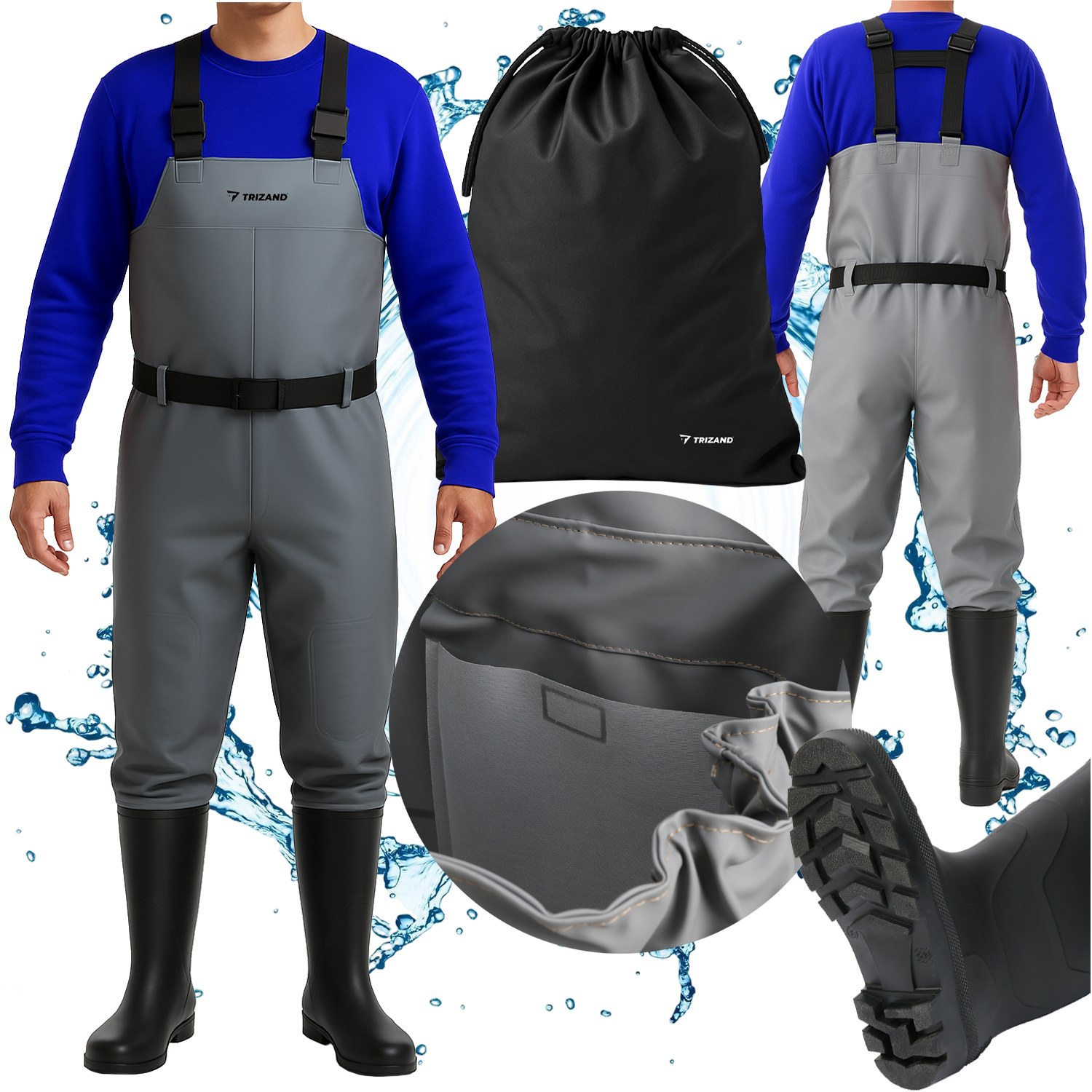 ✅ Wodery zapakowane są w praktyczny, ściągany sznurkiem worek TRIZAND, który ułatwia przechowywanie i transport. Możesz wrzucić je do bagażnika, plecaka lub przechowywać w garażu – bez bałaganu i ryzyka uszkodzenia.