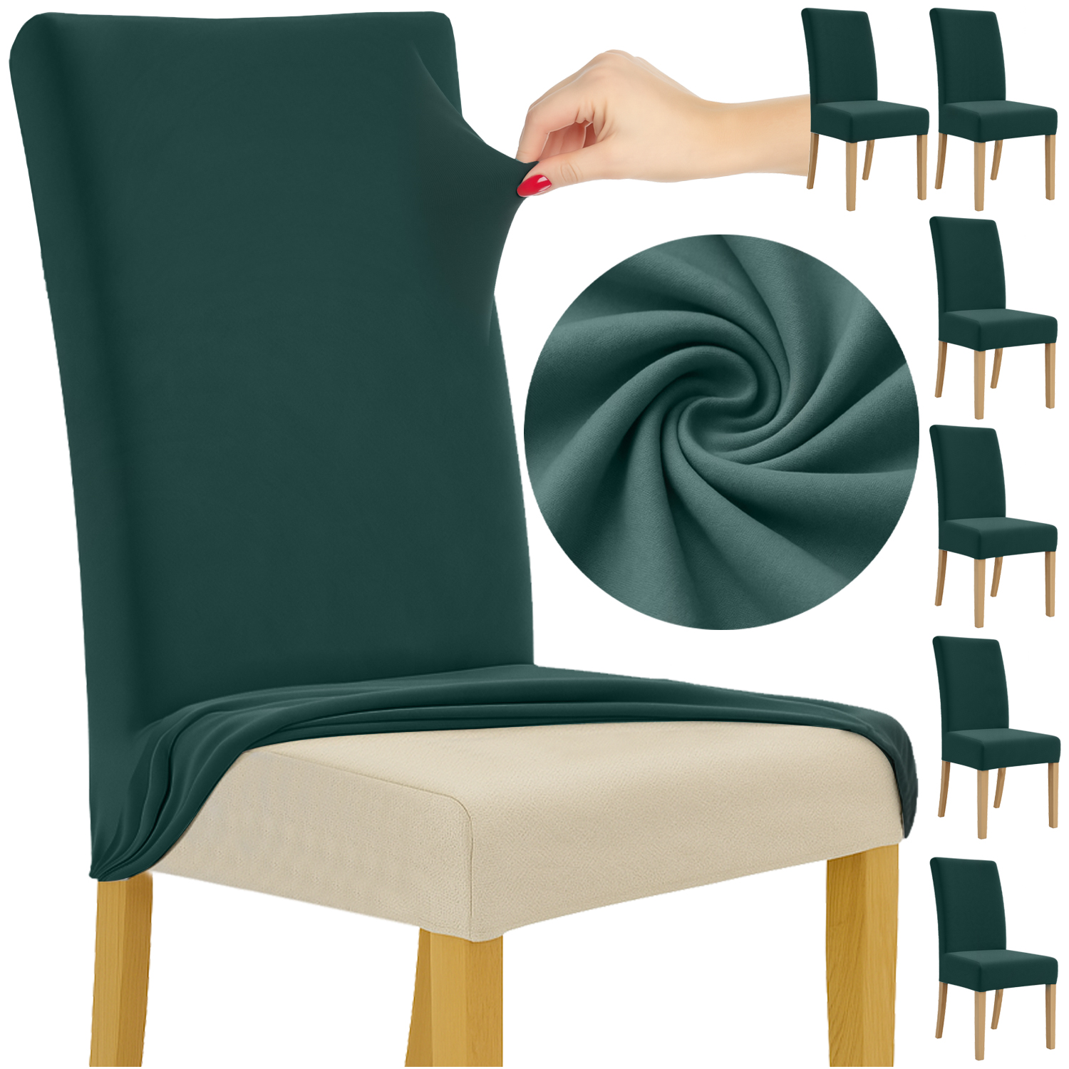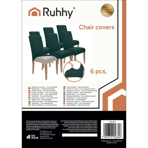 Pokrowiec na krzesło RUHHY zestaw 6 szt – uniwersalne, zielony butelkowy elastyczny miękki 65x40x35 cm