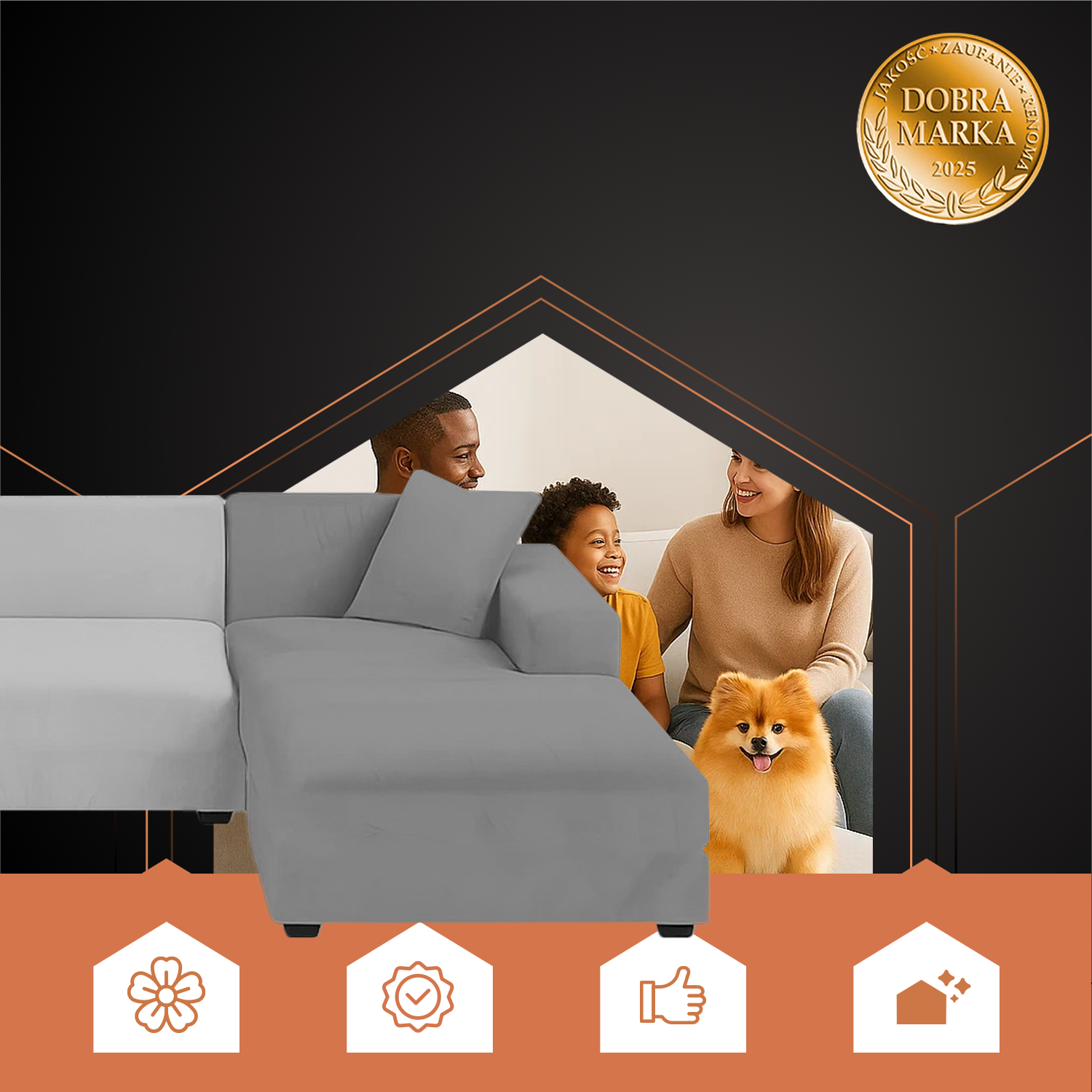 ✴️ Wykonany z elastycznej tkaniny welurowej, pokrowiec idealnie dopasowuje się do kanapy, tworząc gładką i estetyczną powierzchnię. Wszyte gumki zabezpieczają go przed zsuwaniem i marszczeniem, zapewniając komfort użytkowania bez potrzeby ciągłego poprawiania.