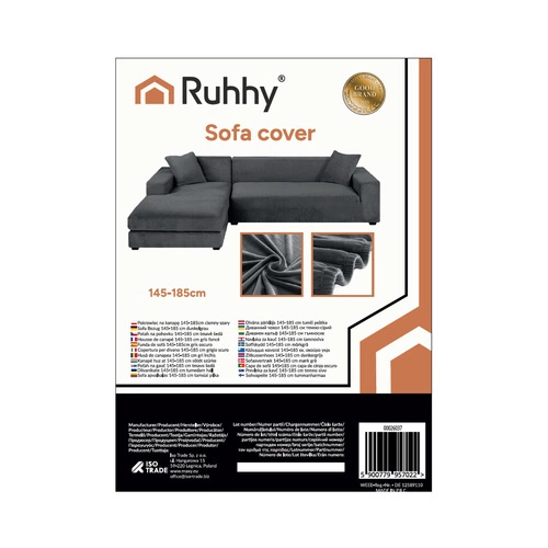 Pokrowiec marki RUHHY wykonany z miękkiego, elastycznego weluru to idealne rozwiązanie do ochrony i odświeżenia narożnika z leżanką. Dopasowuje się do kształtu mebla, nie zsuwa się i nadaje wnętrzu przytulnego, eleganckiego charakteru. Ciemno szary kolor pasuje do wielu aranżacji, a rozmiar 145 - 185 cm sprawdzi się w większości standardowych kanap narożnych.