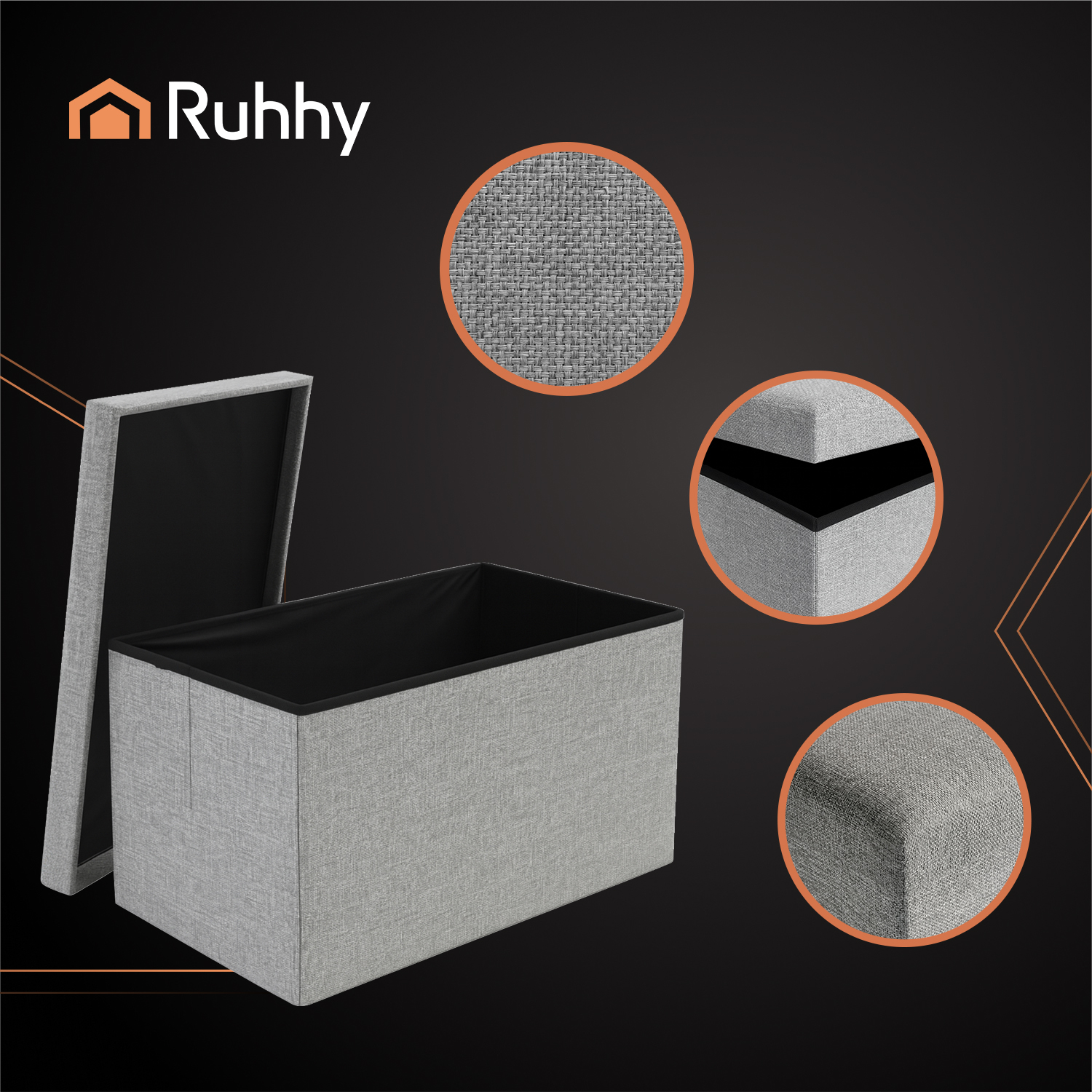 Pufa siedzisko ze schowkiem marki RUHHY to praktyczne i stylowe rozwiązanie do Twojego wnętrza. Tapicerowana wodoodporną tkaniną z usztywnieniem z MDF-u oferuje miękkie siedzisko i pojemny schowek o pojemności 54 litrów – idealny do przechowywania drobiazgów, zabawek czy koców. Składana konstrukcja, wysoka jakość wykonania i maksymalne obciążenie sprawiają, że pufa łączy funkcjonalność z eleganckim wyglądem – sprawdzi się w salonie, sypialni czy przedpokoju.