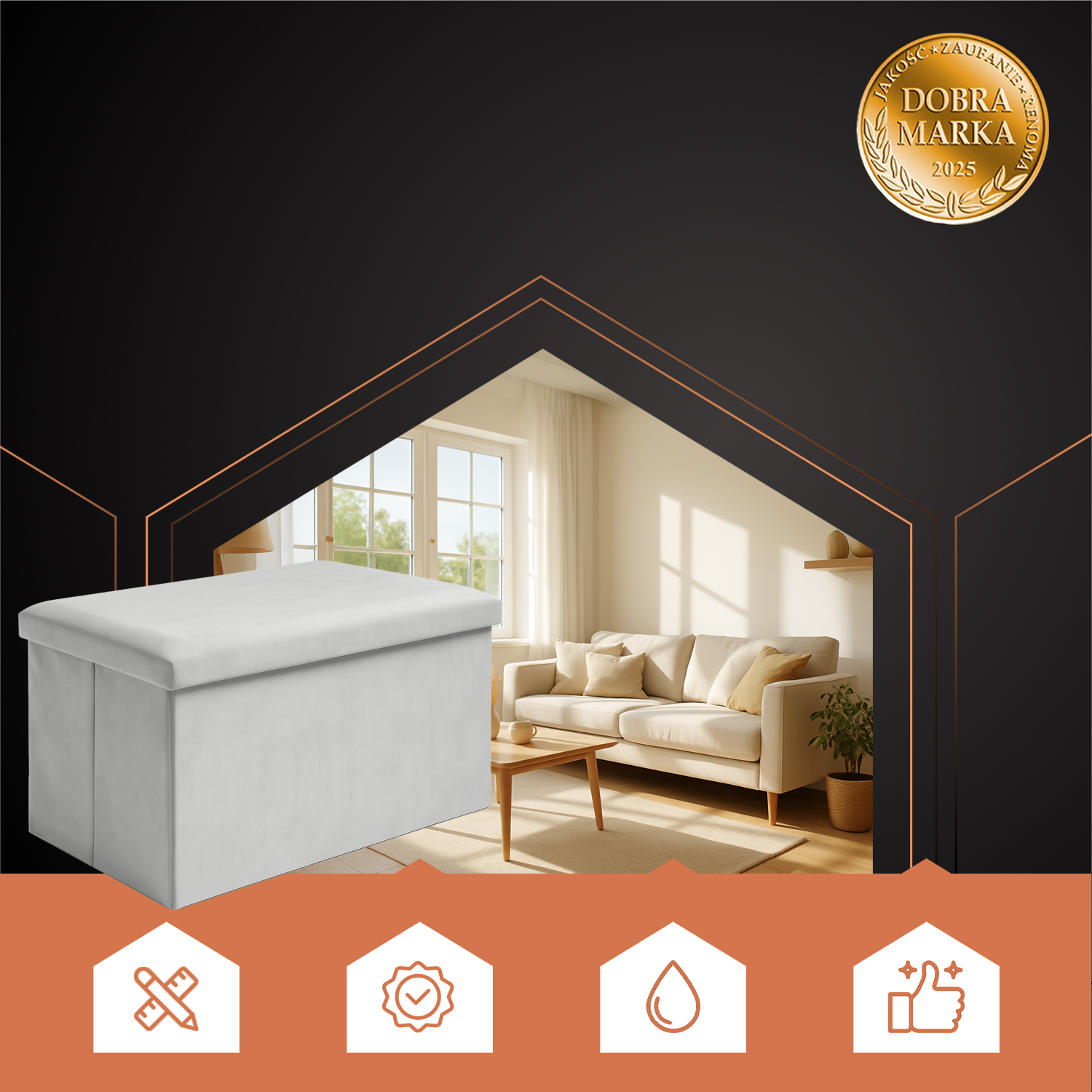 Pufa siedzisko ze schowkiem marki RUHHY to praktyczne i stylowe rozwiązanie do Twojego wnętrza. Tapicerowana wodoodpornym welurem z usztywnieniem z MDF-u oferuje miękkie siedzisko i pojemny schowek o pojemności 54 litrów – idealny do przechowywania drobiazgów, zabawek czy koców. Składana konstrukcja, wysoka jakość wykonania i maksymalne obciążenie sprawiają, że pufa łączy funkcjonalność z eleganckim wyglądem – sprawdzi się w salonie, sypialni czy przedpokoju.