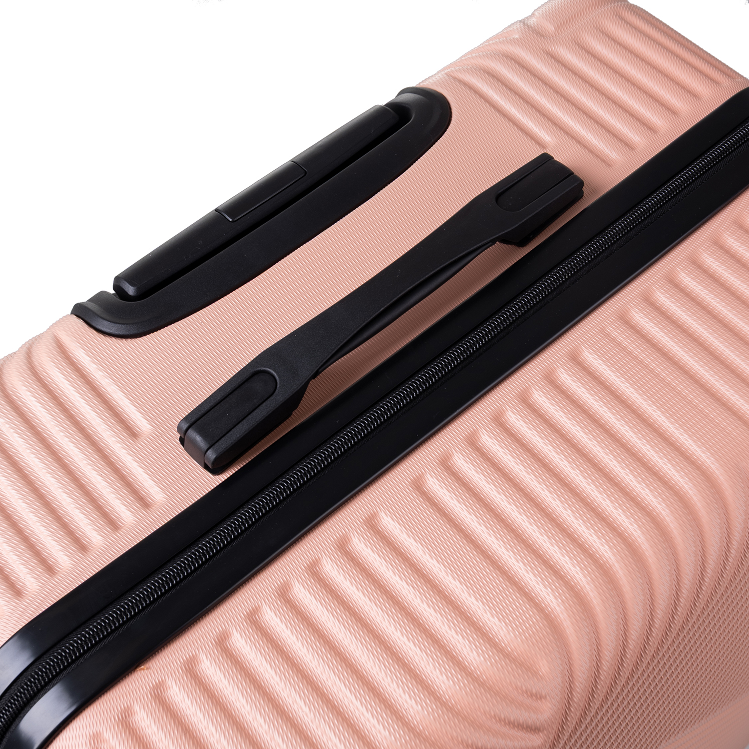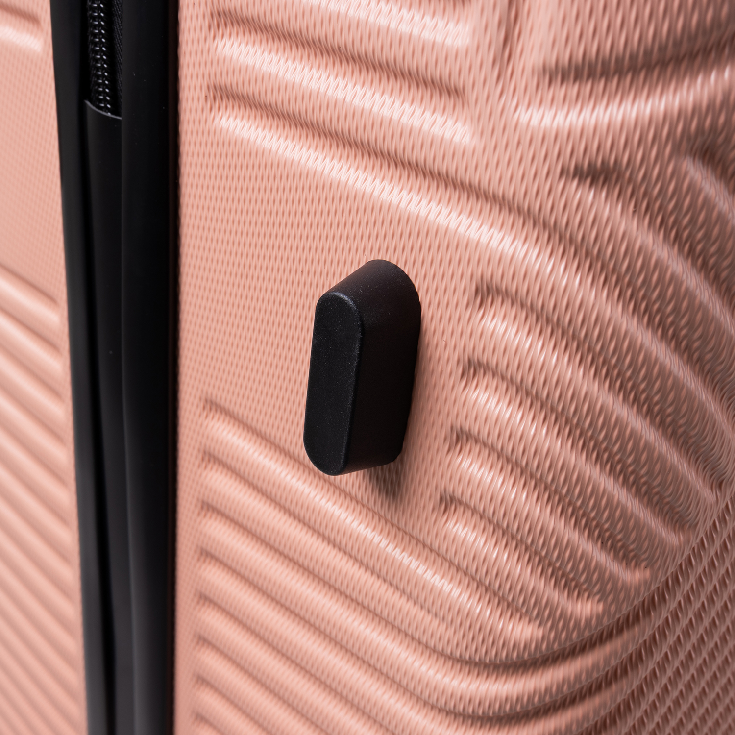 ✅ Walizka została wyposażona w dwa solidne uchwyty do noszenia – górny i boczny – dzięki czemu możesz wygodnie przenieść ją w każdej pozycji, niezależnie od sytuacji. Każdy uchwyt od spodu pokryty jest antypoślizgowym materiałem ABS, który zwiększa stabilność chwytu i zapobiega wyślizgiwaniu się z dłoni. To praktyczne rozwiązanie, które docenisz zwłaszcza podczas wsiadania do pociągu, przenoszenia bagażu po schodach czy umieszczania walizki w bagażniku.