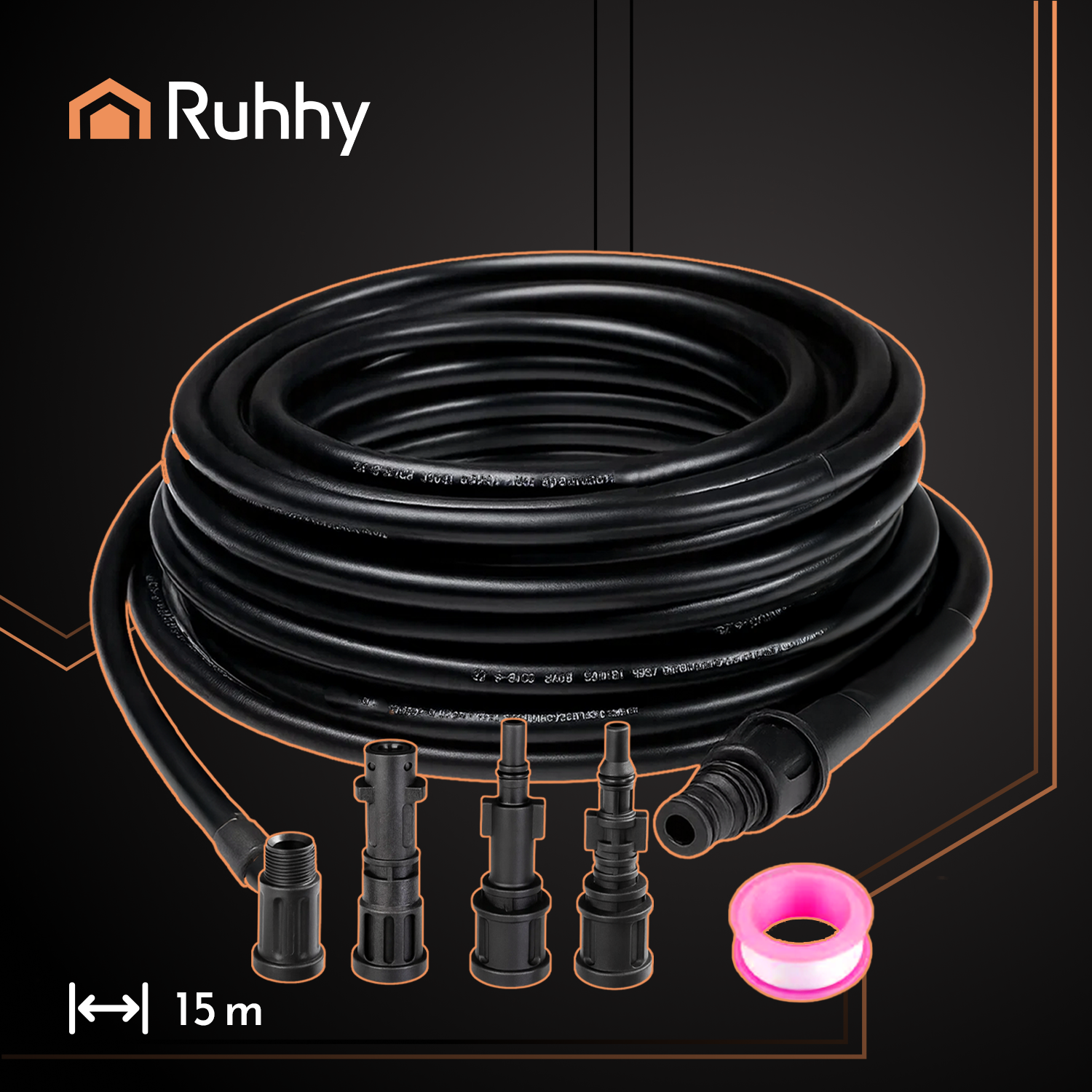 ✴️ 15-metrowy elastyczny wąż ciśnieniowy RUHHY z łatwością usuwa zatory w rurach, błoto z kostki brukowej czy zaschnięty brud z narzędzi – bez chemii, bez demontażu, bez kompromisów