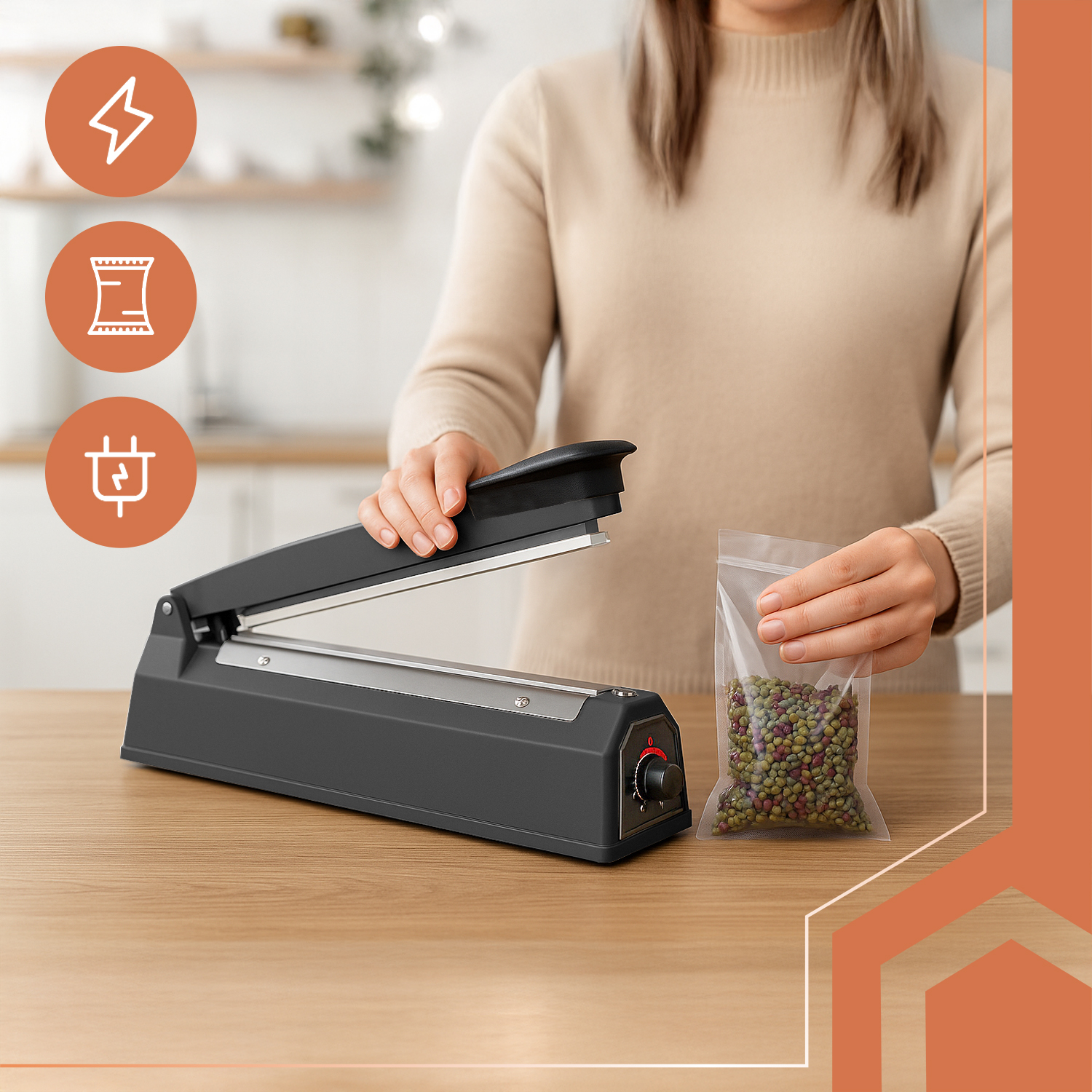 Zgrzewarka do folii ręczna do pakowania pakowarka z regulacją czasu 300mm zgrzew RUHHY – porządek i ochrona zamknięte w jednym ruchu