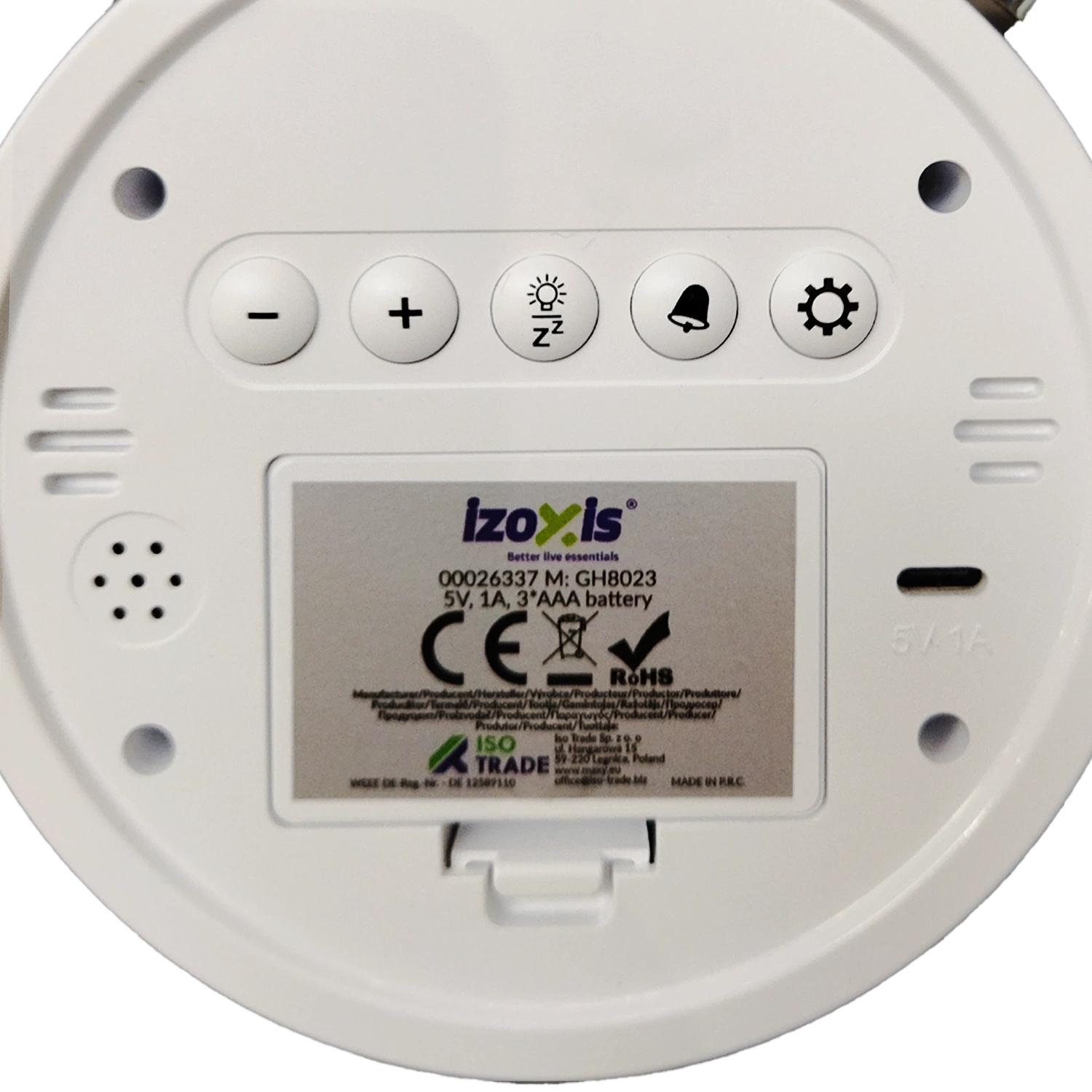 Budzik IZOXIS to prosta obsługa przy pomocy 5 przycisków