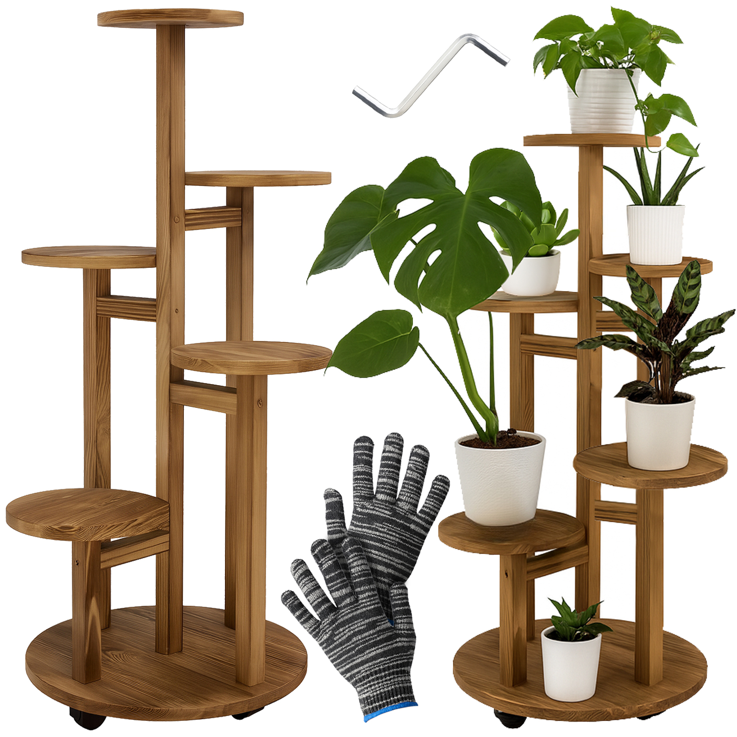 ✴️ Stylowy i funkcjonalny kwietnik RUHHY z naturalnego drewna sosnowego pomieści, aż 7 doniczek na 6 poziomach. Idealny do salonu, na balkon lub taras – zapewnia efektowną ekspozycję roślin, oszczędność miejsca i łatwość w aranżacji. Dzięki kółkom z blokadą łatwo go przestawisz, gdzie tylko zechcesz.