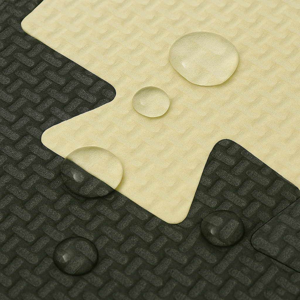 ✅ Wodoodporna powierzchnia puzzli piankowych nie chłonie płynów, dzięki czemu utrzymanie maty w czystości jest wyjątkowo proste. Wystarczy przetrzeć ją wilgotną ściereczką, aby usunąć zabrudzenia i szybko przywrócić świeży wygląd.