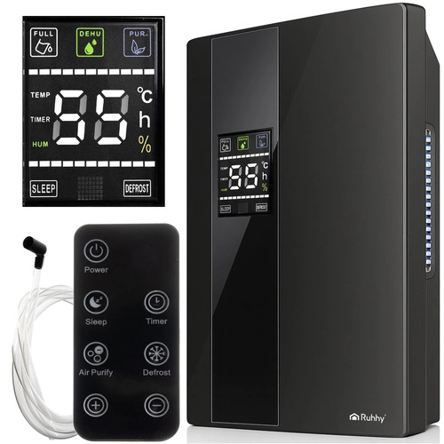 ✴️ Zadbaj o czyste, suche i świeże powietrze w swoim domu dzięki urządzeniu 2w1. RUHHY to połączenie osuszacza i oczyszczacza powietrza – skutecznie usuwa nadmiar wilgoci, a jednocześnie pomaga odświeżyć atmosferę w pomieszczeniu, eliminując zaduch i poprawiając jakość oddychania. Cichy, energooszczędny, z dotykowym panelem, pilotem i funkcją inteligentnego ustawienia wilgotności – idealny do łazienki, kuchni czy sypialni. Działa automatycznie, dokładnie wtedy, gdy trzeba.