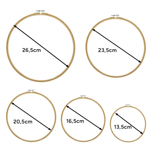 ✅ Zestaw zawiera 5 solidnych tamborków wykonanych z naturalnego bambusa, idealnych do haftu, ozdabiania lub jako ramki do gotowych prac. Bambus jest lekki, trwały i przyjazny dla tkanin – nie odkształca materiału i dobrze trzyma napięcie. Różne rozmiary pozwalają dopasować obręcz do każdego projektu – od małych haftów po większe kompozycje dekoracyjne.