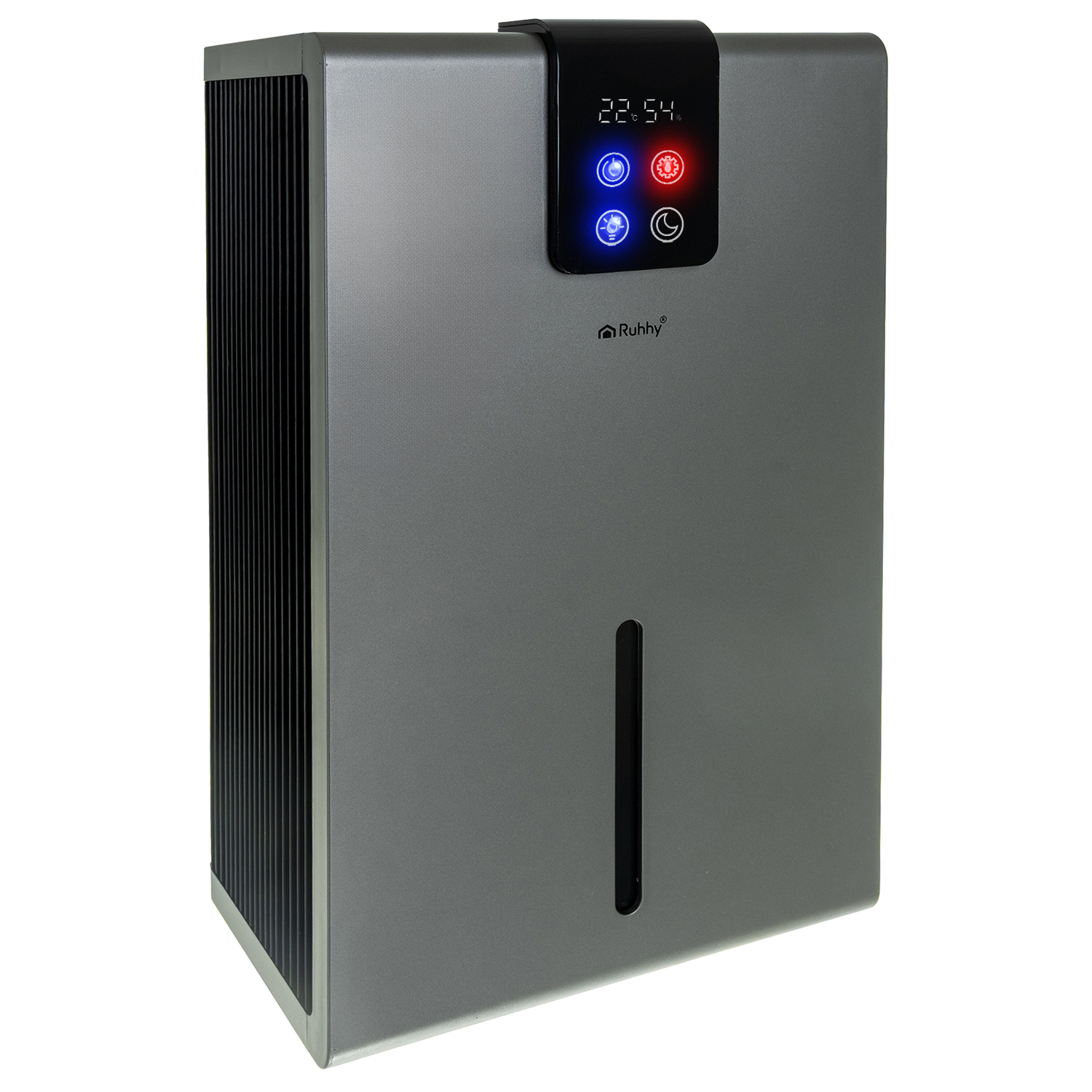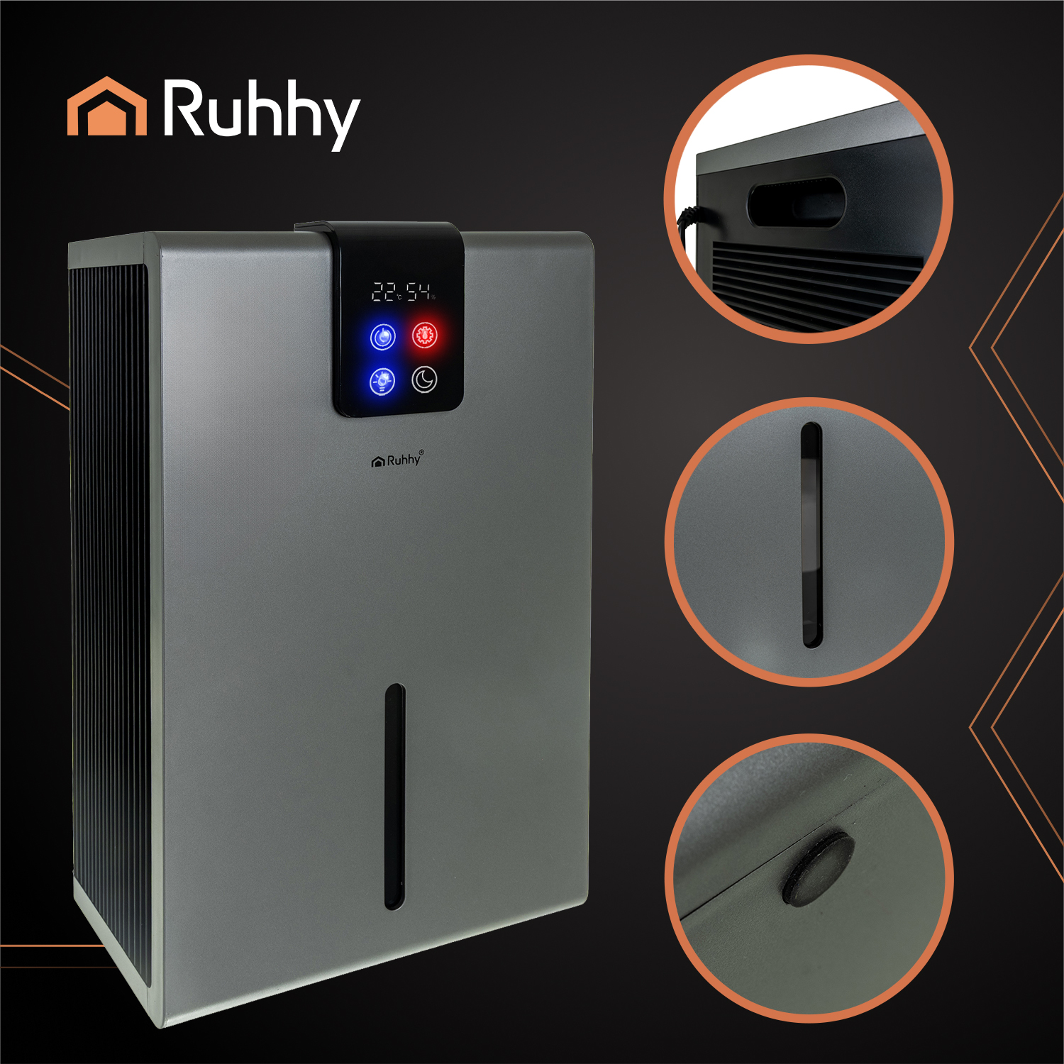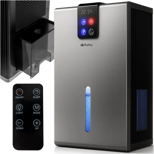 Osuszacz RUHHY to idealne rozwiązanie do walki z wilgocią w domu – skutecznie usuwa nadmiar pary wodnej, zapobiega powstawaniu pleśni i poprawia komfort oddychania. Dzięki technologii modułu Peltiera, wbudowanemu higrometrowi i inteligentnej kontroli wilgotności działa sprawnie, cicho i praktycznie bezobsługowo. Kompaktowy, energooszczędny, sterowany dotykowo lub pilotem, dodatkowo z nastrojowym oświetleniem LED – zadba o zdrowy mikroklimat w Twoim domu o każdej porze dnia i nocy.