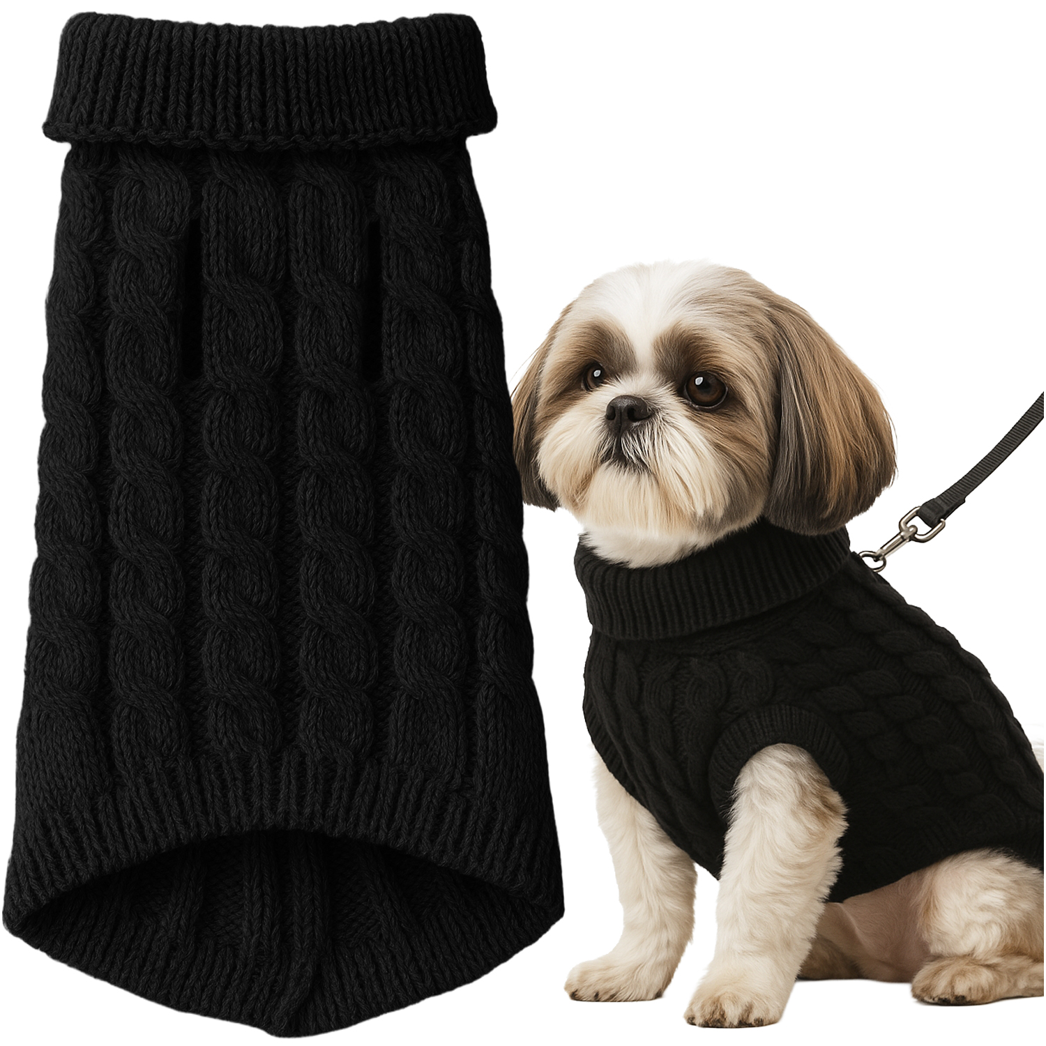 Ubranko dla psa kota ciepły sweterek zimowy sweter ubranie na zimę golf czarny splot ochrona przed chłodem L PURLOV!