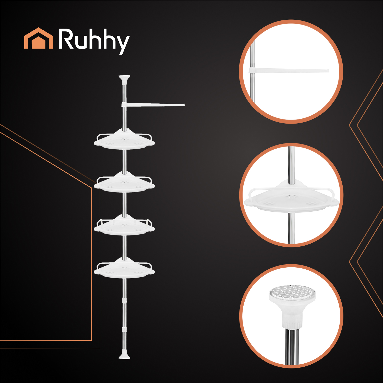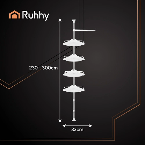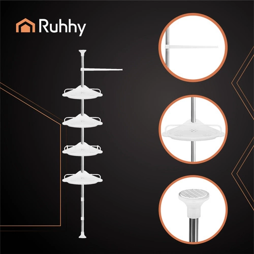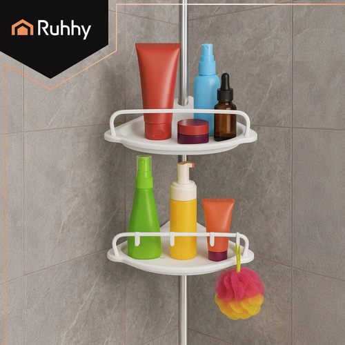 ✴️ Zorganizuj swoją łazienkę z praktyczną półką teleskopową RUHHY. Regulowana wysokość od 240 do 310 cm sprawia, że łatwo dopasujesz ją do każdej przestrzeni, bez wiercenia i bez wysiłku. Cztery funkcjonalne półki, haczyki oraz wieszak pozwolą Ci wygodnie przechowywać kosmetyki, gąbki, ręczniki i wszystkie akcesoria kąpielowe. To sprytne rozwiązanie, które wprowadza ład i wygodę nawet w najmniejszej łazience – stylowo i funkcjonalnie każdego dnia.