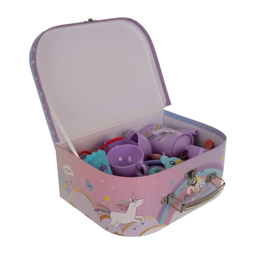 Zabawkowy zestaw herbaciany w walizce z rączką
