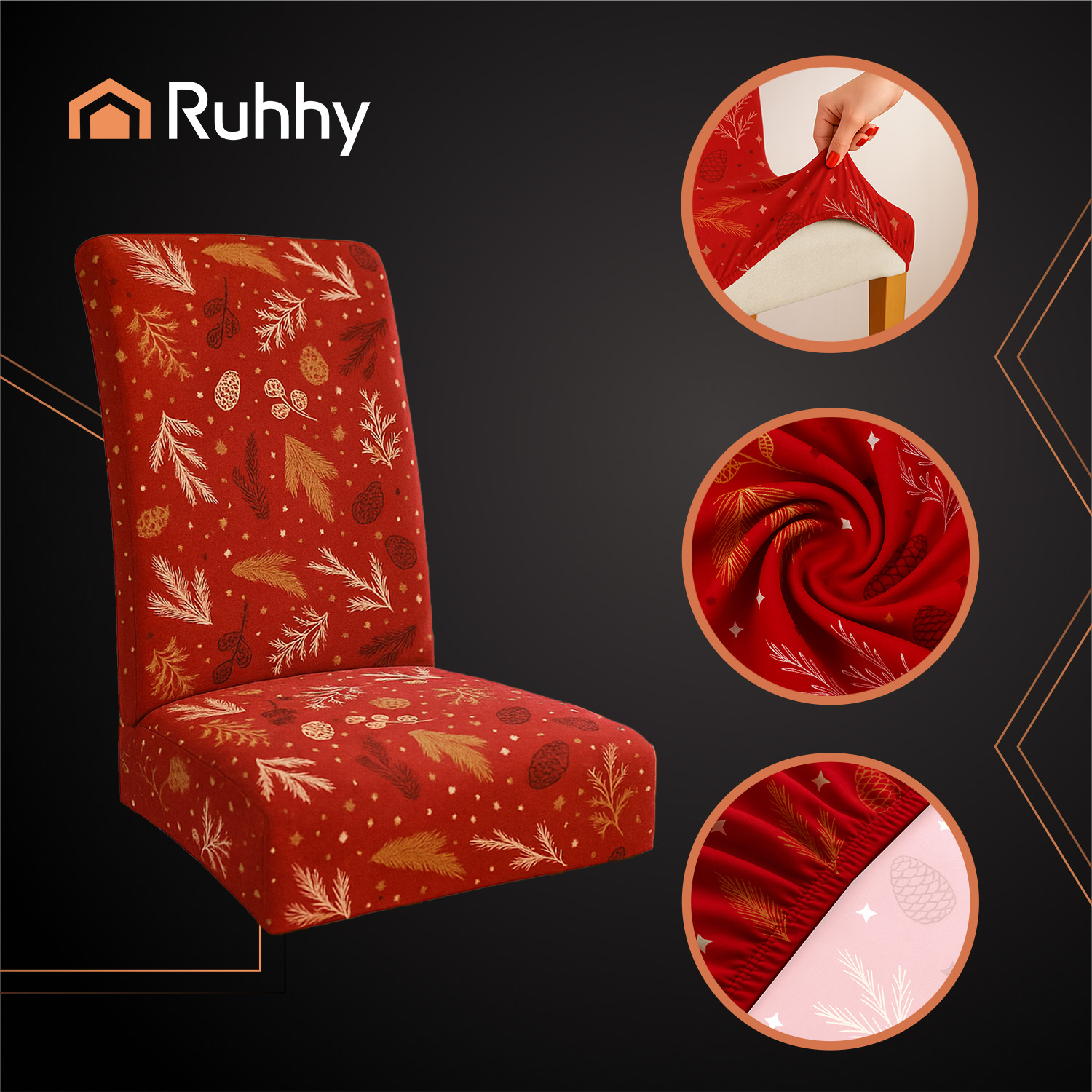 ✴️ Pokrowce marki RUHHY wykonane z miękkiego, przyjemnego w dotyku materiału idealnie dopasowują się do kształtu krzesła, nadając mu odświętny i stylowy wygląd, a jednocześnie chronią przed zabrudzeniami, zadrapaniami czy codziennym zużyciem. Czerwony, świąteczny wzór wprowadza do wnętrza wyjątkowy klimat i pięknie komponuje się z dekoracjami bożonarodzeniowymi. Rozmiar 50x40x40 cm sprawia, że pasują do większości standardowych krzeseł dostępnych na rynku, a zestaw 6 sztuk pozwala szybko i efektownie odmienić cały stół.