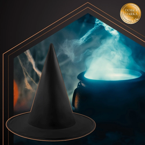 ✴️ niezastąpiony element stylizacji – klasyczny stożkowy kształt i głęboka czerń tworzą magiczny, rozpoznawalny wygląd czarownicy
