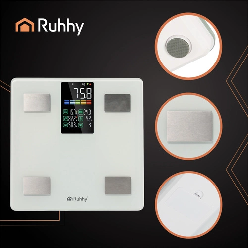 Waga łazienkowa analityczna RUHHY BMI do 226kg elektroniczna z analizą ciała – kompleksowa kontrola zdrowia w Twoim smartfonie!
