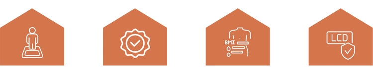 ✴️ ekran LCD – wyświetla 8 kluczowych danych jednocześnie (waga, BMI, kształt ciała, tłuszcz, mięśnie, woda, kości, tłuszcz trzewny)