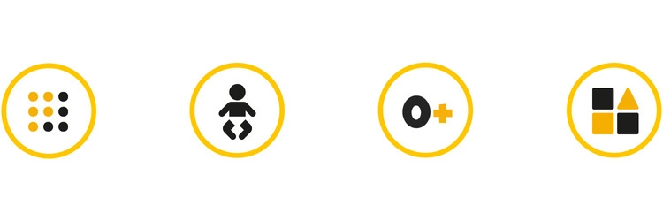 ✔️ kontrastowe kolory – żywe, kontrastowe barwy przyciągają uwagę dziecka i zachęcają do zabawy, dzięki nim maluch uczy się rozróżniać kolory, a jego wzrok i koncentracja rozwijają się w naturalny sposób