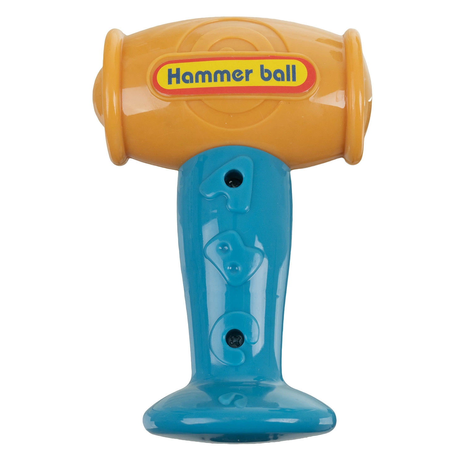 A: Młotek jest lekki, a „wbijak” działa na zasadzie miękkiego trafiania. Dźwięk porównywalny do zwykłych zabawek mechanicznych (bez elektroniki).