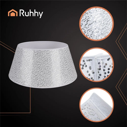 Osłonka na choinkę Ruhhy kołnierz na stojak 60 cm biała ze srebrnymi cekinami maskuje stojak i dodaje uroku – proste rozwiązanie dla perfekcyjnie udekorowanej choinki