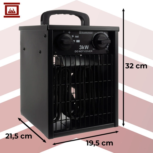 - Wydajność 3000 W Moc grzania Kaminer - Nagrzewnica Kaminer oferuje moc 3000 W, co zapewnia szybkie i efektywne ogrzewanie przestrzeni do 30 m². Idealna do użytku w domu, biurze, warsztacie czy na placu budowy.