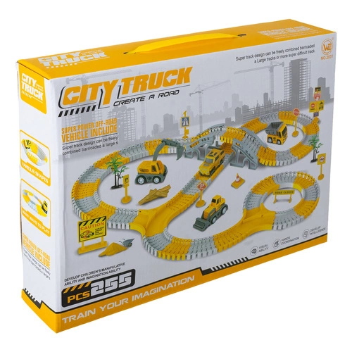 Kolejka Tor Samochodowy Auta Budowlane 255 Elementów – Plac Budowy Dla Małych Konstruktorów