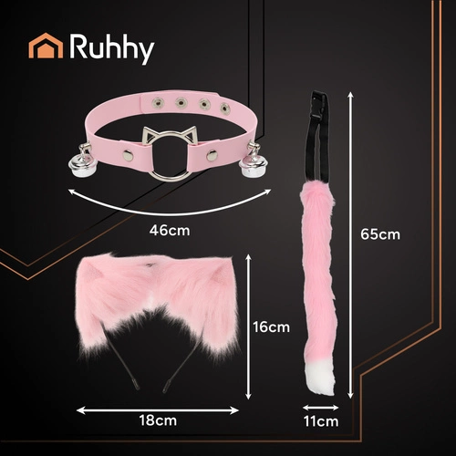 Strój kota / lisa / wilka RUHHY ogon uszy choker, różowy zestaw Therian 3w1, który przyciąga spojrzenia!