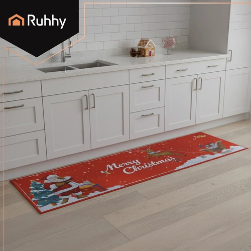 Chodniczek świąteczny 160x50 RUHHY miękki dywanik antypoślizgowy do kuchni i przedpokoju - szybkoschnąca mata dekoracyjna Merry Christmas - przyjemny w dotyku