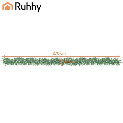 Girlanda świąteczna choinkowa ośnieżona 270 cm Ruhhy - gęsta zielona ozdoba na kominek balustradę i drzwi - łańcuch dekoracyjny stroik na Boże Narodzenie sztuczna gałązka choinki 29 cm szerokości