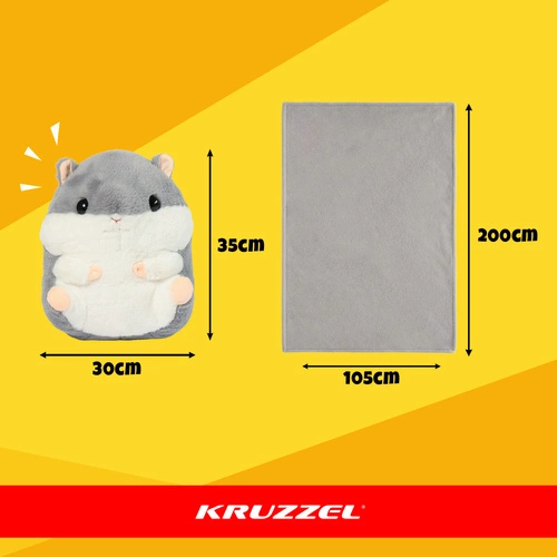 Koc chomik 3w1 Kruzzel - kocyk 105x200 cm + poduszka i przytulanka pluszowa - miękki plusz dla dzieci do domu i podróży