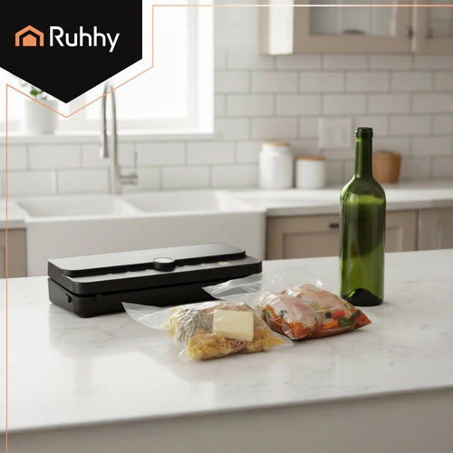 ✴️ Zgrzewarka RUHHY ma wbudowany nożyk przesuwny, dzięki któremu przytniesz folię idealnie równo bez nożyczek, bałaganu i marnowania materiału. W sekundę dopasujesz rozmiar worka do potrzeb, oszczędzając czas i miejsce bo w dobrze zorganizowanej kuchni liczy się każdy detal.