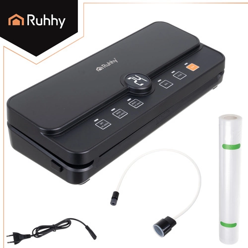 Zgrzewarka próżniowa Ruhhy 80 kPa - szybkie pakowanie i świeżość na dłużej - nożyk przesuwny i schowek na rolkę - 30 cm szerokości worka - 110W - wężyk do pojemników i rolka w zestawie