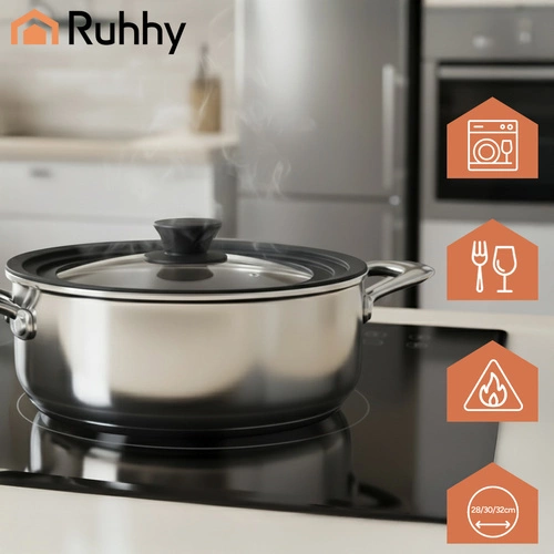 Tak, konstrukcja pokrywki Ruhhy 3w1 umożliwia dopasowanie jej do trzech średnic naczyń: 28 cm, 30 cm i 32 cm. Dzięki silikonowym stopniom pokrywka szczelnie przylega do garnków i patelni o różnych rozmiarach, ograniczając uciekanie pary i poprawiając komfort gotowania. To rozwiązanie eliminuje konieczność kupowania kilku osobnych pokrywek.