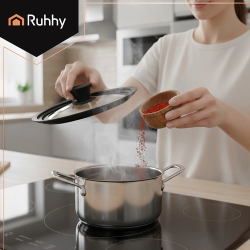 Zastosowanie - uniwersalna pokrywka RUHHY 3w1, która dopasuje się do Twojej kuchni i stylu gotowania