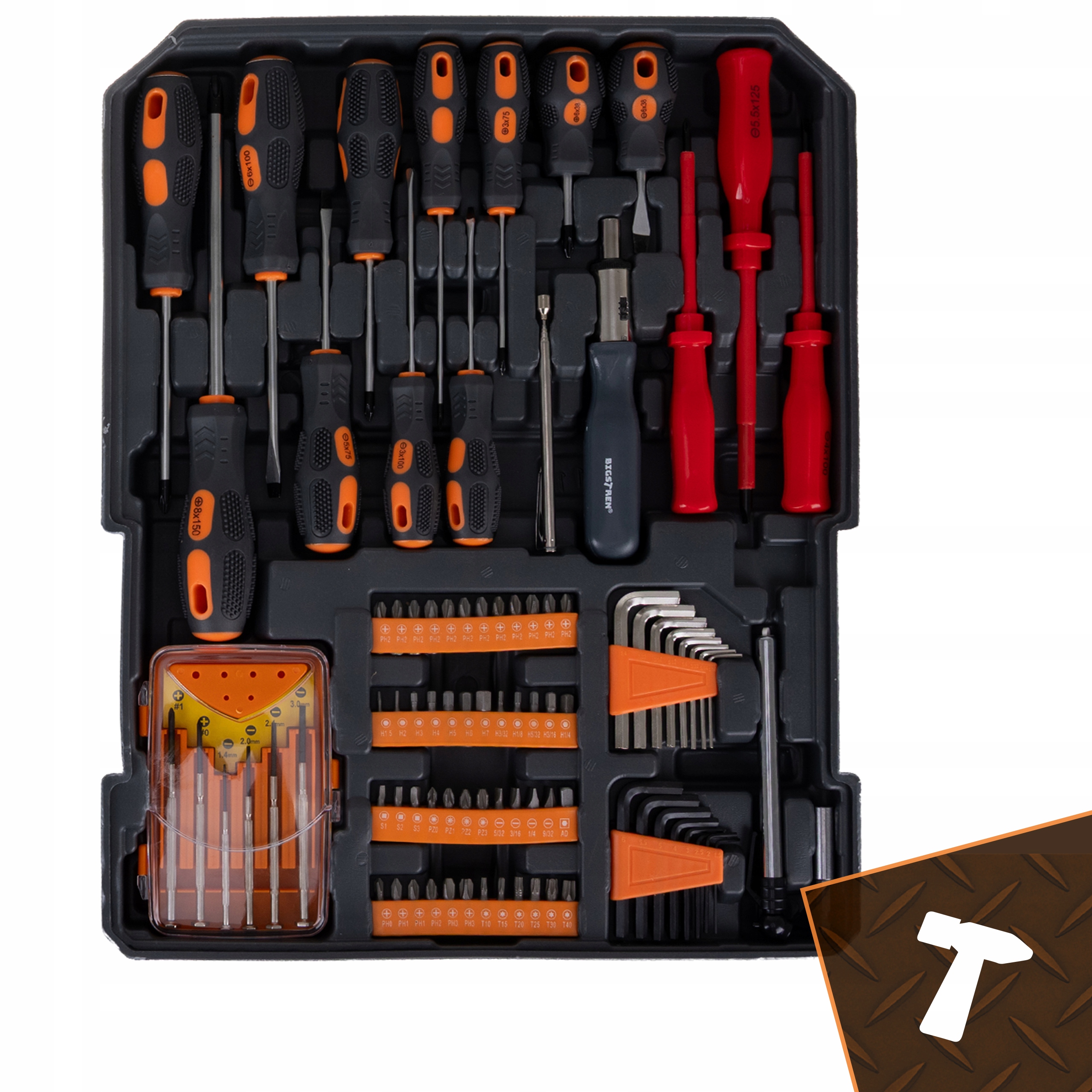 ✳️ Serce zestawu Bigstren to miejsce, w którym znajdują się najważniejsze narzędzia do prac wymagających siły, precyzji i dużej różnorodności. To komplet, który daje pełną gotowość do pracy zarówno w domu, jak i w garażu czy warsztacie.