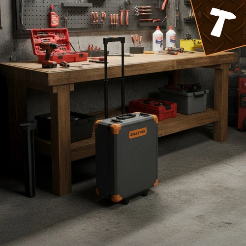 ✳️ Zestaw Bigstren 1000 el. jest to najbardziej rozbudowanych kompletów narzędziowych dostępnych na rynku. W aluminiowej walizce znajdują się cztery wyjmowane organizery wypełnione kluczami, nasadkami, bitami, wkrętakami, szczypcami oraz akcesoriami montażowymi. Zestaw został zaprojektowany tak, aby zapewnić pełną mobilność, porządek i możliwość wykonania praktycznie każdej naprawy. Walizka posiada kółka, teleskopowy uchwyt oraz metalowe zamknięcia na kluczyk, dzięki czemu świetnie sprawdza się w domu, garażu, warsztacie i pracy mobilnej.