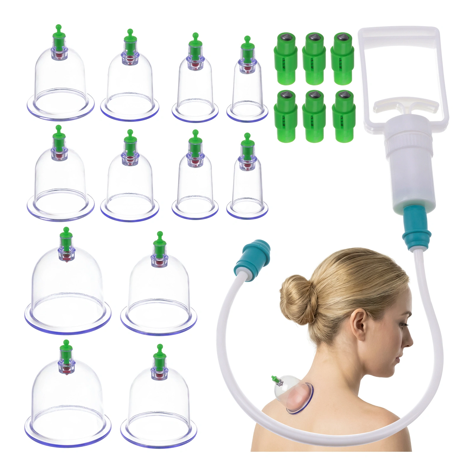Bańki chińskie próżniowe SOULIMA 12 szt z pompką - bezogniowe, do masażu, masaż antycellulitowy, naturalna terapia i regeneracja ciała