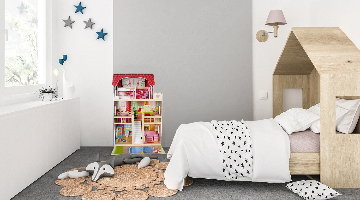 - PIĘKNE KOLORY – piękne kolory zachęcają do zabawy i pobudzają wyobraźnię dziecka. Są delikatne i niekrzykliwe, dzięki czemu nawet kilkugodzinna zabawa lalkami nie męczy oczu dziecka. Kolorystyka jest uniwersalna i będzie pasowała do każdego wystroju pokoju dziecka, nie zaburzając jednocześnie estetyki całości.
