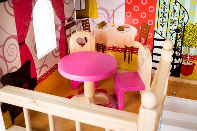 - MODEL XXL TO JEDEN Z NAJWIĘKSZYCH MODELI NA RYNKU - domek dla lalek ma wysokość aż 90cm! Jest wykonany z solidnego drewna, jego konstrukcja charakteryzuje się ogromną wytrzymałością. Wszystkie elementy są starannie wykończone, doskonale oszlifowane i bezpieczne dla dziecka. Jego wysokość pozwala na zabawę w dogodnej pozycji nawet dla większego dziecka. Domek ponadto jest bardzo stabilny – nie przewróci się na dziecko podczas zabawy.