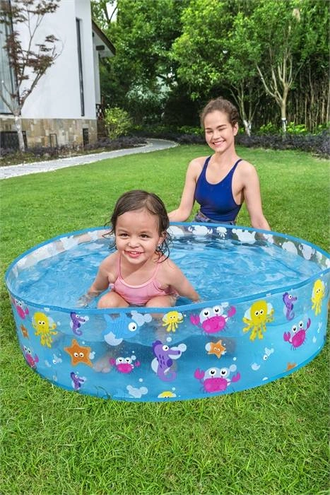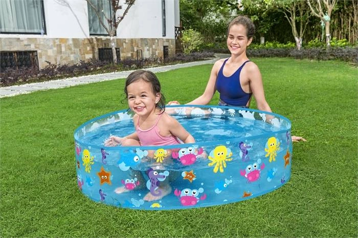 - ŁATWE SKŁADANIE I ROZKŁADANIE – basen rozporowy charakteryzuje się łatwością w rozkładaniu i skłanianiu, nie ma potrzeby nadmuchiwania, wystarczy tylko nalać wody do środka.